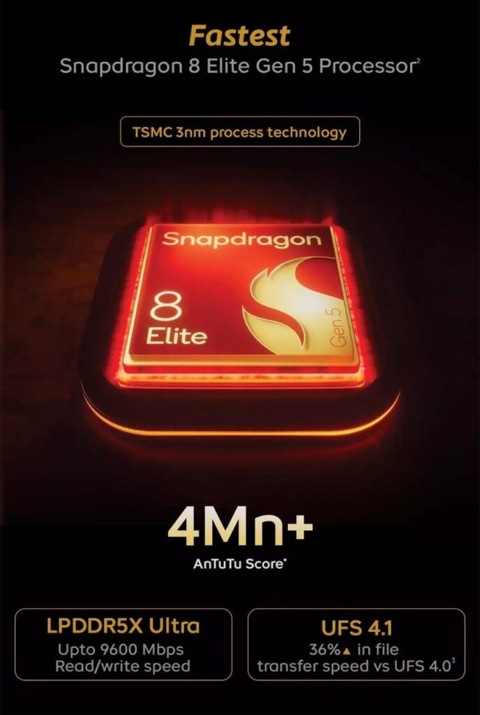 At its heart, the iQOO 15 is powered by the Snapdragon 8 Elite Gen 5 chipset, Qualcomm’s most advanced 3nm flagship SoC. It’s designed for raw speed, efficient multitasking, and pro-level gaming.