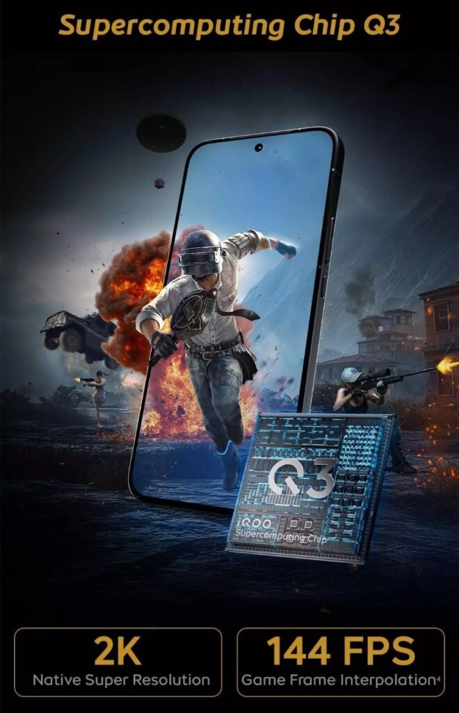 iQOO adds its proprietary Q3 Gaming Chip, designed to complement Snapdragon’s power. It: